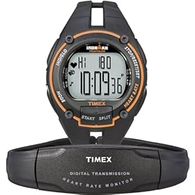 Product FeaturesEditorial ReviewsIf you're in training, you know how important it is to track your progress and heart rate. You can do both with the Ironman Road Trainer Heart Rate Monitor Watch from Timex. Wearing this performance watch, you can preset your desired heart rate target zone to one of six ranges, review your workout average, and meet your peak heart rate during every workout. The Ironman sports a 50-lap memory with average heart rate per lap, a 100-hour chronograph with lap and split, and a 100-hour, 22-mode countdown timer. There's also an alarm with a five-minute backup. If you're working out at night, turn on the INDIGLO night-light feature to see your results no matter what time you're training. What's more, the watch is water-resistant to 100 meters and features an adjustable elastic strap and replaceable battery. | |