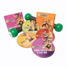 Product DescriptionShed pounds and have a blast in the process with the Zumba Fitness Total Body Transformation System DVD set. Loaded with red-hot dance steps, pulsating Latin rhythms, and easy-to-follow routines, this invigorating dance-fitness "party" will have you movin', groovin', and shakin' the weight off to the sexy, exotic rhythms of salsa, cumbia, samba, merengue, and more. Each routine features interval training sessions that combine fast and slow rhythms with resistance training, helping sculpt and tone your body while burning fat. As a result, Zumba fanatics can enjoy multiple long-term health benefits while having fun in the moment. Working out can be a lot of things, but it's never been known to be an exhilarating experience--until now. The set--which comes with four DVDs and six total workouts--will work your body from head to toe, starting with the basics and then moving to your favorite targets, such as your core, thighs, and abs. The set also comes with maraca-like toning sticks to add some muscle to your body sculpting routines. The DVDs include the following workouts: Zumba Fitness Basics Workout, Zumba Fitness 20-Minute Express Workout, Zumba Fitness Sculpt & Tone Workout, Zumba Fitness Cardio Party Workout, Zumba Fitness Live! Workout, and Zumba Fitness Flat Abs Workout. About Zumba Fitness